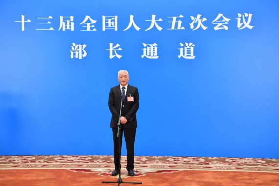 Çin'in başkenti Beijing'de düzenlenen 13. Ulusal Halk Kongresi'nin beşinci oturumunun ikinci genel kurul toplantısından sonra video bağlantısı aracılığıyla söyleşi veren Çin Bilim ve Teknoloji Bakanı Wang Zhigang, 8 Mart 2022. (Fotoğraf: Li Xin/Xinhua)