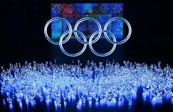 4 Şubat 2022'de çekilen fotoğrafta, Çin'in başkenti Beijing'deki Ulusal Stadyum'da düzenlenen Beijing 2022 Kış Olimpiyat Oyunları'nın açılış töreninde sergilenen Olimpiyat Halkaları görülüyor. (Fotoğraf: Wu Wei/Xinhua)