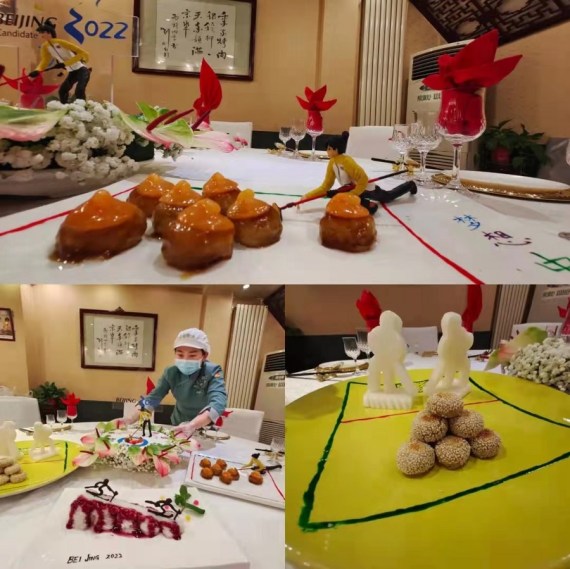 Restoranın Olimpiyat Köyü şubesinin şef yardımcısı Zhang Gang, “İyi bir spor temalı yemek, şeflerin becerileri ve yaratıcılığını test ederken şekil olarak da müşterilerin zihninde çağrışım yapacak gerçekçilikte olmalı” dedi. Gang ve meslektaşları, Oyunların açılışından önce bu yemekleri geliştirmek için altı ay çalıştılar.