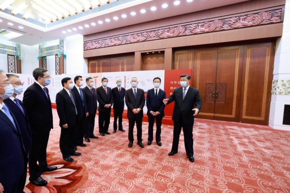 Aynı zamanda Çin Komünist Partisi (ÇKP) Merkez Komitesi Genel Sekreteri ve Merkez Askeri Komisyonu Başkanı olan Çin Devlet Başkanı Xi Jinping, Çin’in başkenti Beijing’deki Büyük Halk Salonu’nda C919 proje ekibinden temsilcilerle biraraya geldi, 30 Eylül 2022.Etkinliğe, aynı zamanda ÇKP Merkez Komitesi Siyasi Bürosu Daimi Komitesi üyesi olan Başbakan Yardımcısı Han Zheng de katıldı. (Fotoğraf: Ding Lin/Xinhua)