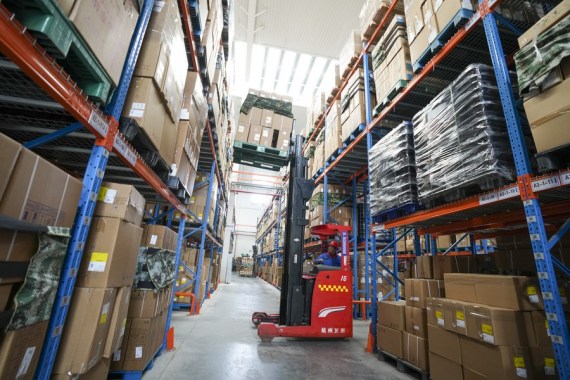 Çin'in güneybatısındaki Chongqing kentinin Dianjiang ilçesinde önde gelen bir motosiklet tekerlek poryası imalat işletmesinin deposunda çalışan işçi, 28 Kasım 2023. (Fotoğraf: Liu Chan/Xinhua)