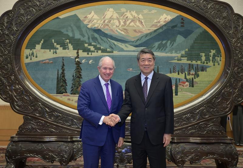 Çin Başbakan Yardımcısı He Lifeng (sağda), Çin'in başkenti Beijing'deki Büyük Halk Salonu'nda Blackstone Grubu Yönetim Kurulu Başkanı ve CEO'su Stephen Schwarzman ile bir araya geldi, 23 Nisan 2026. (Fotoğraf: Cai Yang/Xinhua)