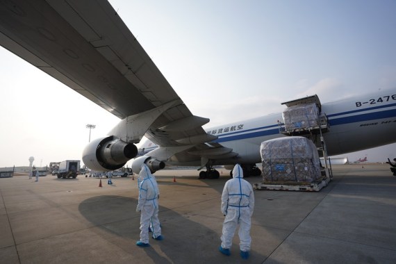 Çin'in doğusundaki Jiangxi eyaletinin merkezi Nanchang'daki Nanchang Changbei Uluslararası Havalimanı'ndaki bir kargo uçağı görülüyor, 23 Ocak 2021. (Fotoğraf: Zhou Mi/Xinhua)