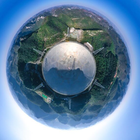 Havadan çekilen fotoğrafta Çin’in güneybatısındaki Guizhou eyaletinde, bakım gören Çin’in 500 metrelik Diyaframlı Küresel Radyo Teleskobu (FAST) görülüyor.