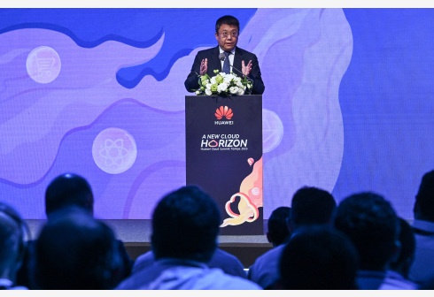 Çin'in teknoloji devi Huawei, İstanbul'da düzenlenen Huawei Türkiye Bulut Zirvesi'nde Türkiye'deki ilk yerel bulut sistemini tanıttı. (Fotoğraf: Ömer Kuşçu/Xinhua)