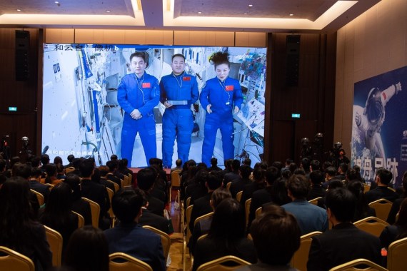 Xinhua’da yer alan habere göre üç kişilik ekip, Beijing, Hong Kong Özel İdari Bölgesi ve Makao Özel İdari Bölgesi’ndeki üç mekanda yaklaşık 500 genç öğrenciyle canlı olarak uzay-Dünya görüşmesi yapıp uzay hayallerini ve hedeflerini paylaştı.