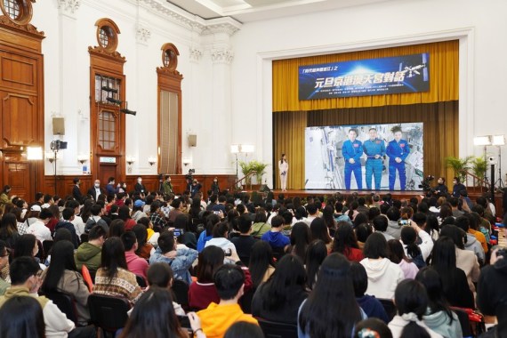 Tiangong uzay istasyonunda bulunan üç Çinli astronot, 2022'nin ilk günü Cumartesi öğleden sonra Beijing, Hong Kong ve Makao'daki gençlerle görüntülü olarak bir sohbet gerçekleştirdi.