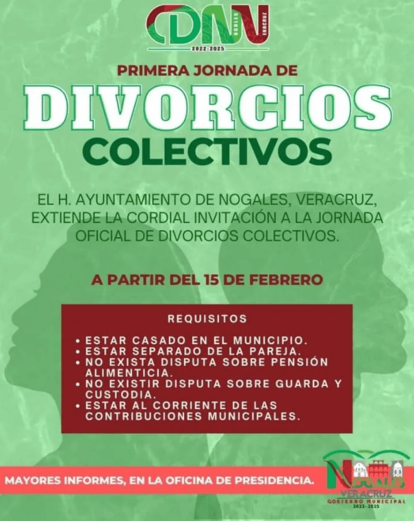 Veracruz eyaletinde yer alan Nogales şehrinin Belediye Başkanı Ernesto Torres Navarro sosyal medya üzerinden yaptığı açıklamada, kentte 15 Şubatta toplu boşanma etkinliği düzenleneceğini duyurdu. Ülkede birçok yerel yönetim 14 Şubat’ta toplu evlilik etkinliği düzenlerken, Nogales Belediyesi tarafından duyurulan boşanma etkinliği şaşkınlıkla karşılandı.