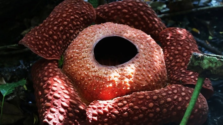Dünyadaki en büyük tek çiçeğe sahip bitki türü olan “Rafflesia arnoldii”, çiçek açtı.