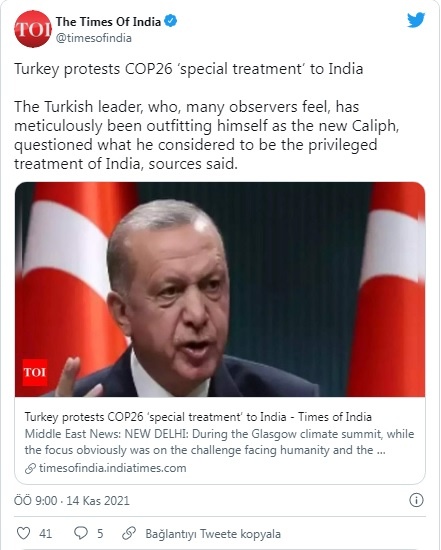 Cumhurbaşkanı Tayyip Erdoğan’ın, Glasgow’daki BM İklim Zirvesi’ne (COP26) son anda katılmama kararının arkasındaki ‘protokol ve güvenlik’ kriziyle ilgili yeni bir iddia ortaya atıldı. Hint basını, Erdoğan’ın ev sahibi ülke olarak İngiltere’nin yanı sıra ABD ve Hindistan heyetlerine sağlanan protokol ayrıcalıklarının Türkiye’ye sağlanmamasını protesto ettiğini öne sürdü. Buna göre Ankara’nın öfkesinin hedefinde, Hindistan vardı.