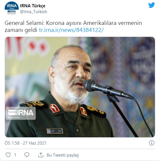 Devrim Muhafızları Başkomutanı, törende yaptığı konuşmada, ABD’nin yaptırımlarına karşılık, “Korona aşısını Amerikalılara vermenin zamanı geldi” vurgusunu yaptı.