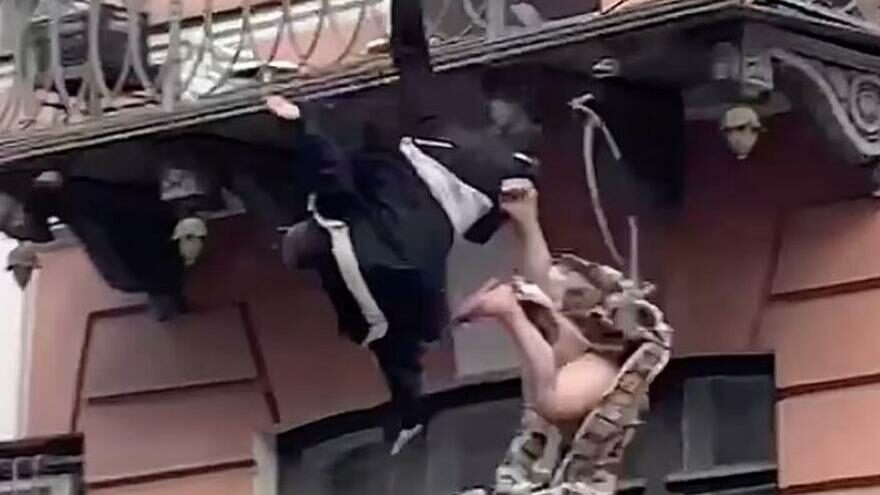 Rusya’da bir çiftin balkonda başlayan kavgası kaldırımda sona erdi…