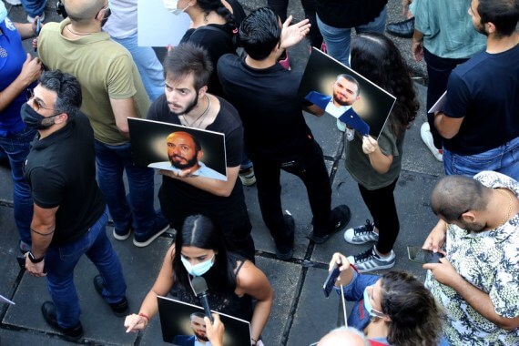 Lübnan’ın başkenti Beyrut’ta Adalet Sarayı yakınlarındaki protestoya katılan insanlar