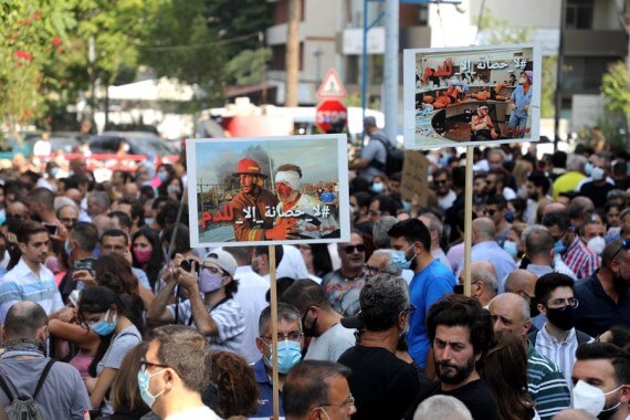 Beyrut Limanı’ndaki patlamaların kurbanlarının akrabaları Lübnan’ın başkenti Beyrut’taki Adalet Sarayı yakınında düzenlenen protestoya katılıyor.