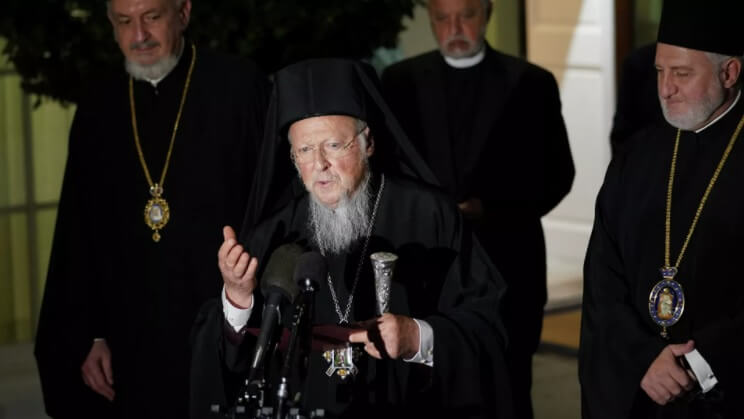 ABD’de Joe Biden ile görüşen Patrik Bartholomeos, basına kapalı gerçekleşen görüşmenin ardından Beyaz Saray’daki gazetecilere açıklamalarda bulundu.