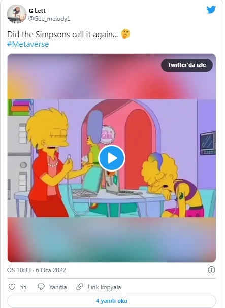 Sosyal medyadaki bir kullanıcı, “Simpsonlar 2011’de metaverse’ü tahmin etti” diyerek deyim yerindeyse tartışmanın fitilini ateşledi. Diğer kullanıcılar ise bu fikre oldukça ikna oldu. Başka biri olayın başka bir boyutuna dikkat çekti ve şunu yazdı: “Simpsonlar metaverse’ü tahmin mi etti yoksa Mark Zuckerberg bu fikri Simpsonlar’dan mı çaldı?”