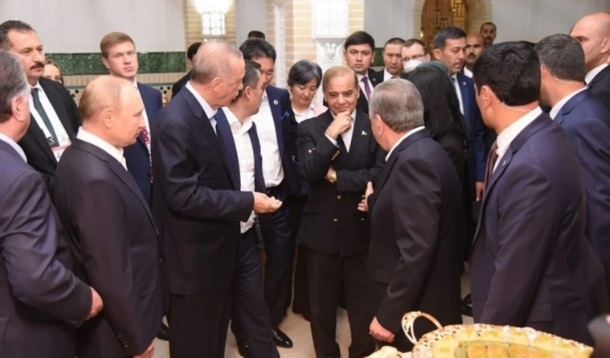 Sosyal medyada paylaşılan fotoğraflardan birinde, ilgiyle Şahbaz Şerif’e odaklanmış ülke liderleri görülüyordu.