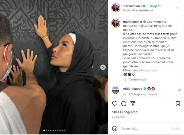 Himer, Instagram’dan paylaştığı iletisinde, “Bazılarınız biliyor olabilir ama birçok kişi hala merak ediyor. […] Aylar önce İslam’a girdim. Günlük hayatımı takip edenler biliyor ama kesin olan şey bu samimiyeti paylaşmanın önemi” ifadelerine yer verdi.