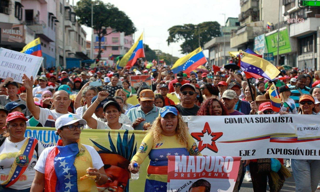 Venezuela’da binlerce kişi, ABD’nin 3 Ocak günü gerçekleştirdiği saldırıyı protesto etmek ve tutuklu bulunan Devlet Başkanı Nicolas Maduro ile eşi Cilia Flores’in serbest bırakılmasını talep etmek için başkent Karakas’ta bir araya geldi.