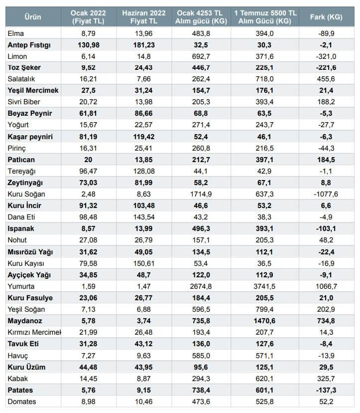 Sözcü’nün Türkiye Ziraat Odaları Birliği’nin (TZOB) her ay açıkladığı verilerden hareketle hazırladığı tabloya göre, yeni asgari ücret ile bugün markete gidilse birçok ürün ocak ayına göre daha az alınıyor.