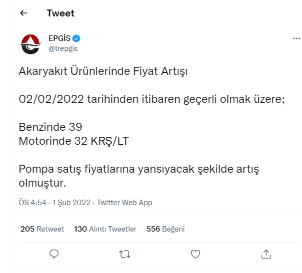 Benzin ve motorine art arda gelen zamlara ise bir yenisi daha eklendi. Enerji Petrol Gaz İkmal İstasyonları İşveren Sendikası (EPSİS), 2 Şubat’tan geçerli olmak üzere benzin ve motorine zam geldiğini duyurdu.