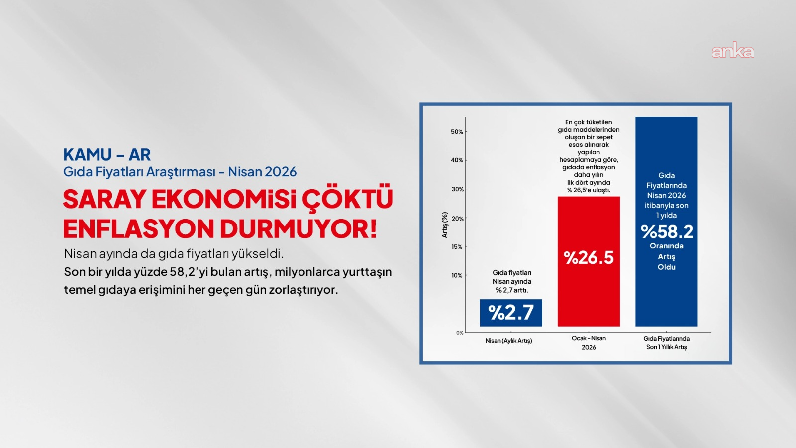 Raporda, “İktidarın yanlış politikaları yüzünden Türkiye’nin içerisine sürüklendiği yüksek enflasyon sürecinin gıda fiyatları aracılığıyla ücretliler, dar gelirliler ve yoksullara çıkardığı faturanın hızla ağırlaşmaya devam ettiği” belirtildi.