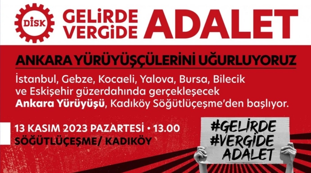 DİSK, işçi sınıfının gelirde, vergide, ülkede adalet için bugün Ankara’ya yürüyüş başlatıyor.