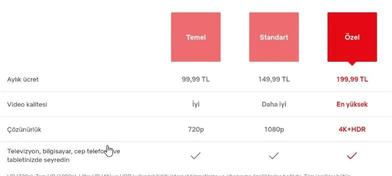 Netflix Türkiye’nin internet sitesinde ise “Aylık plan ücretleri 99,99 TL ile 199,99 TL arasında değişmektedir” ifadeleri yer aldı.