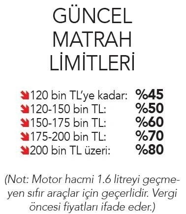 İndirimle ÖTV’ye esas olan rakam düşeceği için otomobil fiyatları da düşecek. Yüzde 45’lik dilimin matrahı 250 bin liraya yükselirse, yüzde 80’lik ÖTV dilimindeki araç yüzde 45 dilimine girecek ve 531 bin liralık fiyatı 426 bin liraya inecek.