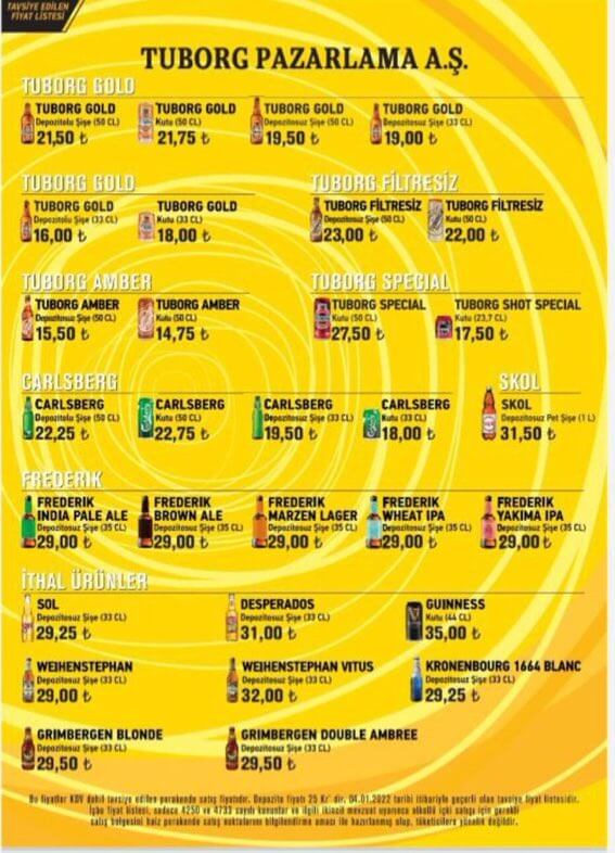 Bugün ise Tuborg grubu biralara zam geldiği duyuruldu.