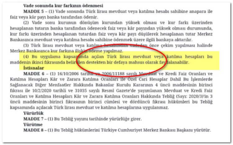 Paramedya’nın haberine göre; Kamuoyunda daha önce bankalarda kur destek hesabı açan herkesin faydalanacağı yolunda bir algı oluşmuştu. Ancak son tebliğ ile bunun sadece hesabında döviz olan mudilerin TL’ye geçmesi halinde 1 kez olacağı açığa çıktı.