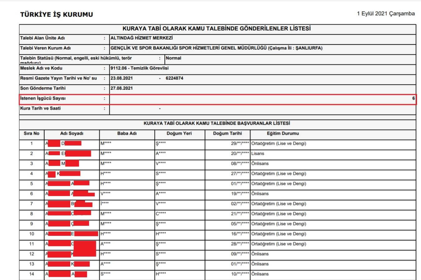 6 KİŞİLİK İŞ İÇİN 10 BİN BAŞVURU LİSTESİNİ YAYINLADI