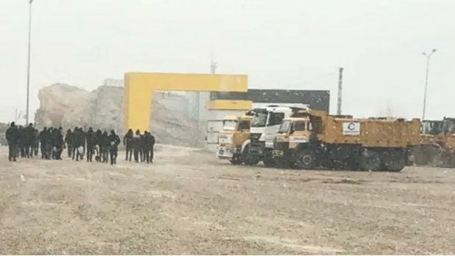 Gazeteduvar’dan Salih Sertkal’ın haberine göre işçiler, servislerinin bugün iptal edilmesi üzerine bulundukları şantiyeden 2 kilometre uzaklıktaki normal servis yoluna kar yağışı altında yürümek zorunda kaldı.