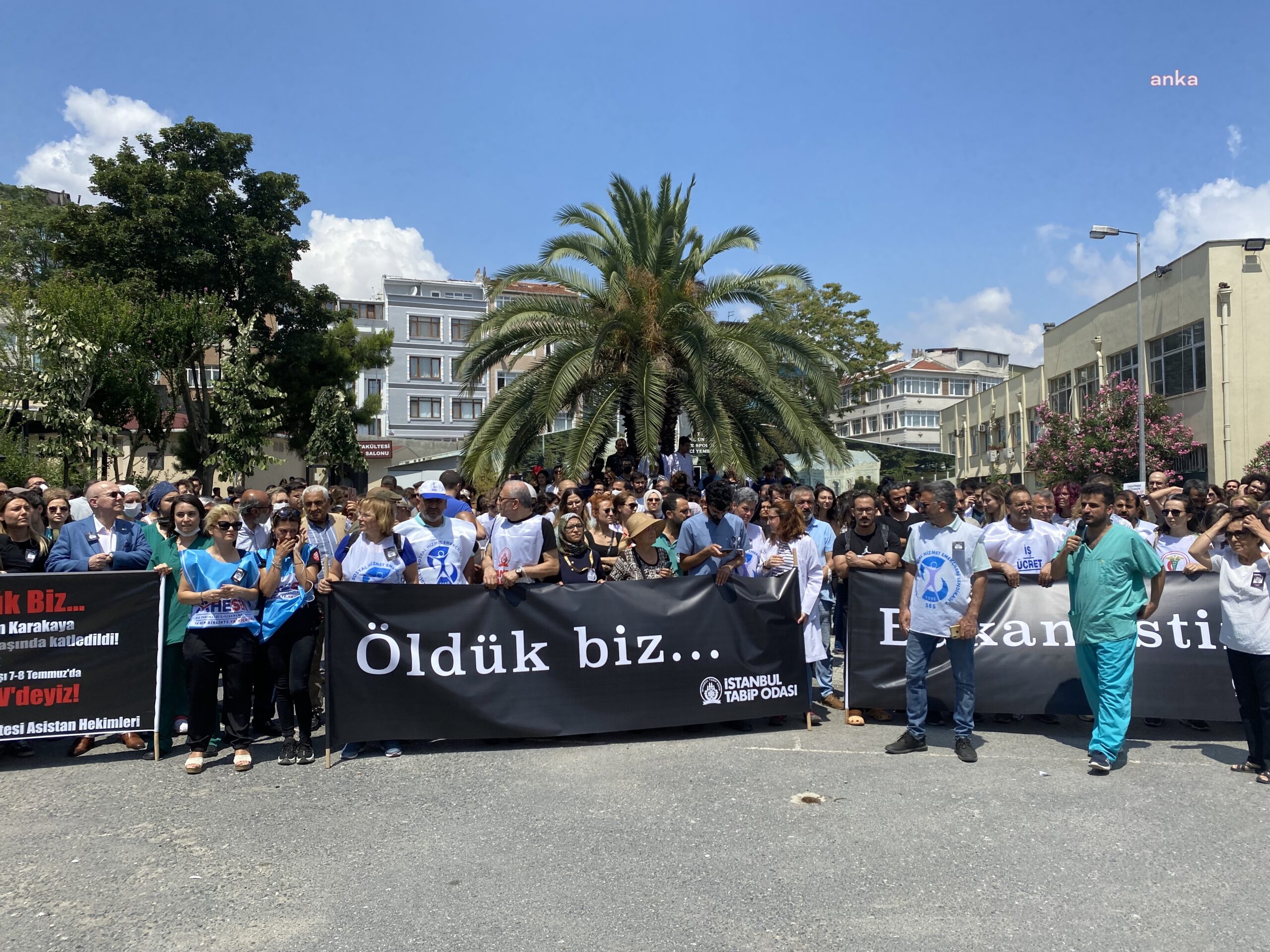 İstanbul’da hekimler ve sağlık çalışanları, kardiyoloji uzmanı doktor Ekrem Karakaya’nın öldürülmesini protesto etmek için, polisin müdahalesine ve engelleme çabalarına karşın, Çapa Tıp Fakültesi’nin önünden İl Sağlık Müdürlüğü’ne yürüdü. Sağlıkçılar, “Sağlık alanında yürütülen politikalar bizlere şiddet, ölüm, çaresizlik ve umutsuzluk olarak geri dönmektedir. Sağlık emekçilerine en ufak bir zarar gelmesine tahammülümüz yoktur” açıklamasını yaptı.