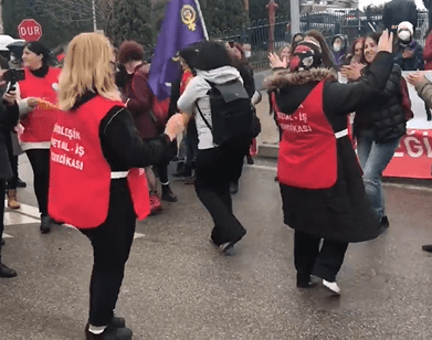Kocaeli’de 100’e yakın işçinin işten çıkartıldığı Farplas Otomotiv’de de işçilerin direnişi sürüyor. Sendikaya üye oldukları için işten çıkarılan işçiler 22 gündür fabrika önünde eylem yapıyor. Birleşik Metal-İş Sendikası üyesi kadın işçiler bugün, Tarkan’ın ‘Geççek’ şarkısı eşliğinde oynadı.