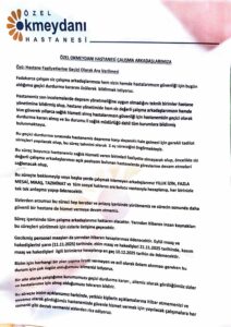 Çalışanlara yazılı bir açıklama yapan hastane yönetimi bikrikmiş maaşların 12 Aralık 2025 gününe kadar ödeneceğini ileri saürdü.