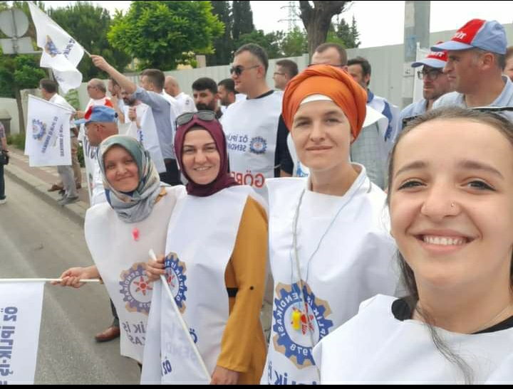 “10 Mart’ta Selinay arkadaşımız işten atıldı. O da sendika üyesiydi. Fabrikanın önünde grev kararı alındı. 25 Mart’ta fabrikanın önünde basın açıklaması yaptık. Herhalde patronun gözü korktu. Gece vardiyasına gittiğim akşam işten çıkarıldım. 21:45’te fabrikanın önüne koyuldum. Üç personel geldi, tutanak tutulmuş. 14, 5 yıldır çalışanım, bir tane tutanağım yokken geçmiş tarihli tutanaklarımı önüme koydular. Tutanakları imzalamadım. Fesih kağıdını verdiler. Hiçbirini imzamaladım. Dolabımı boşalttırdılar, aynı bir mahkum gibi, sadece elimde kelepçe yok, fabrikadan kapıya götürüldük.
