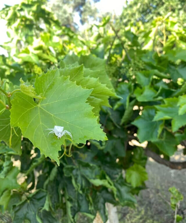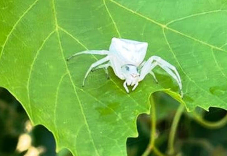 Aydın’ın Germencik ilçesinde halk arasında insan yüzlü örümcek olarak bilinen yengeç örümceği görenleri hayrete düşürdü. Germencik ilçesi Ömerbeyli Mahallesi’nde yaşayan bir vatandaş, bahçesinde çalıştığı sırada asma yaprağı üzerinde yengeç örümceği buldu.