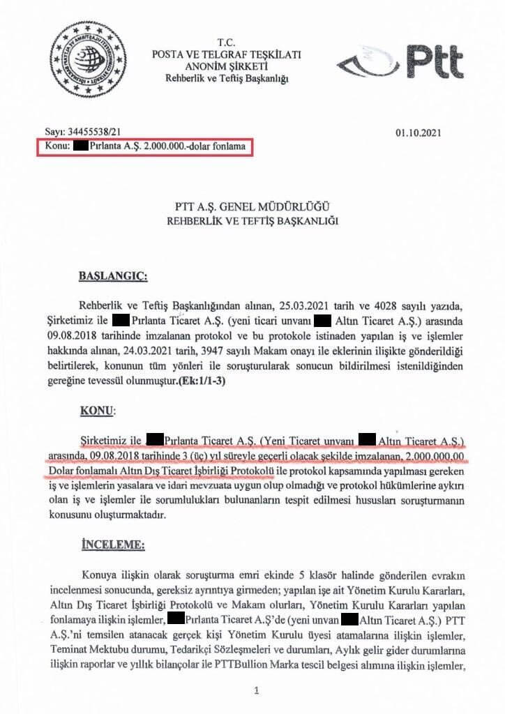 *2018’de PTT Genel Müdür ve yardımcısı kaynağından altın alım satım işi için bir şirketle 3 yıllık kar ortaklığı protokolü imzalar.