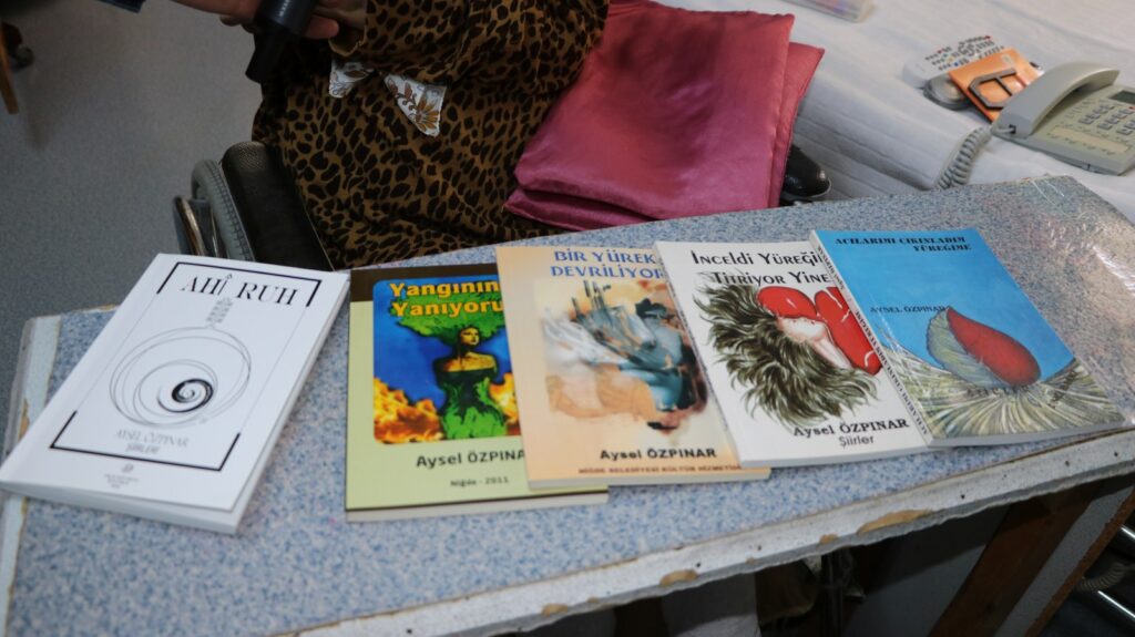 Şiirlerin, kendisine yaşama sevinci sağladığını ifade eden Özpınar, “Bu odada, karantina hayatı yaşıyorum. Bir kez bile ‘Canım sıkıldı’ demedim. Ziyaretime gelenler, dört duvar arasında nasıl sıkılmadığımı soruyor. Ben, şiir sayesinde bu duvarları görmüyorum” dedi.
