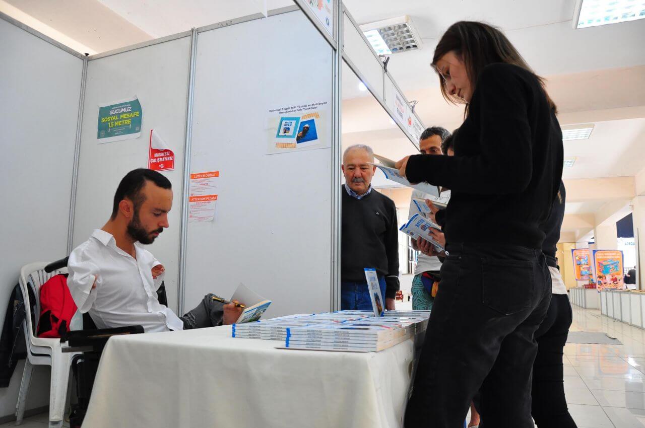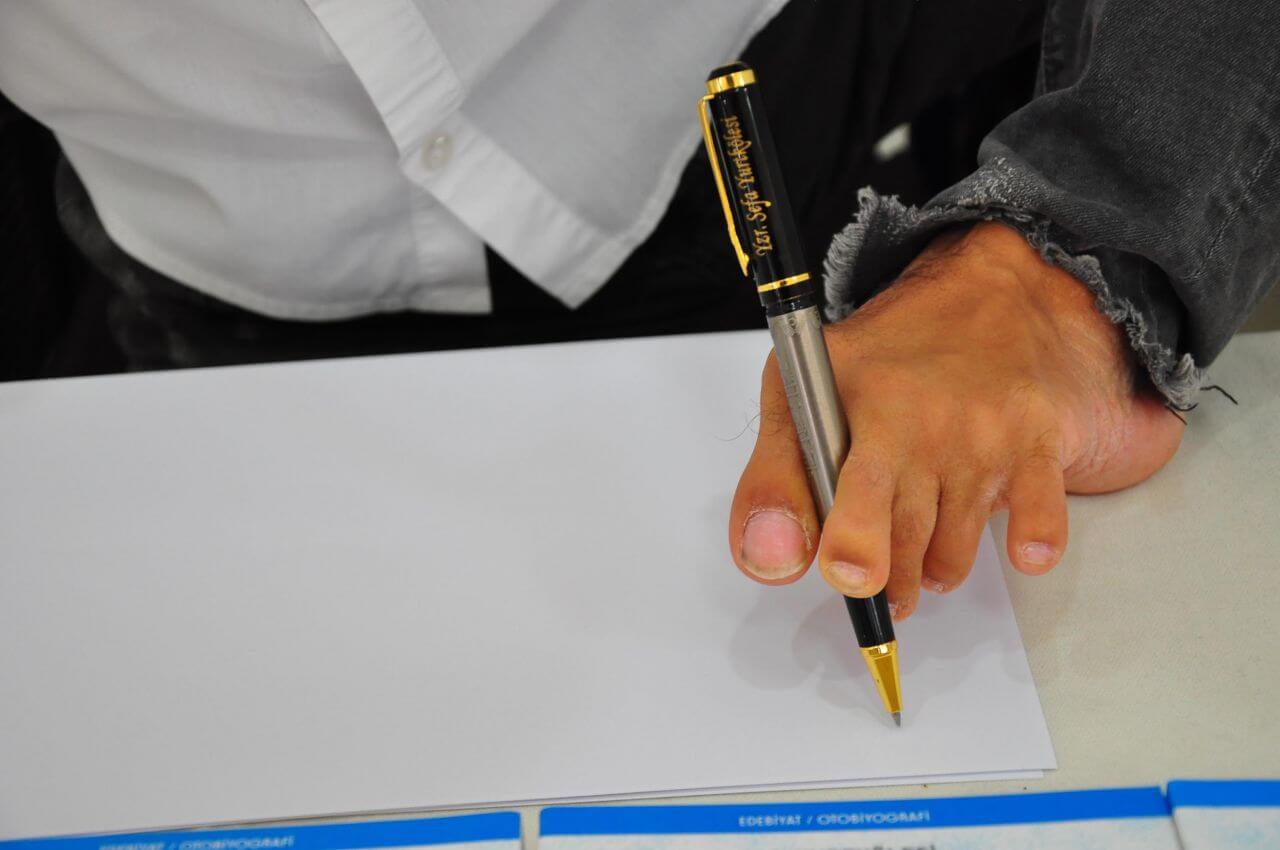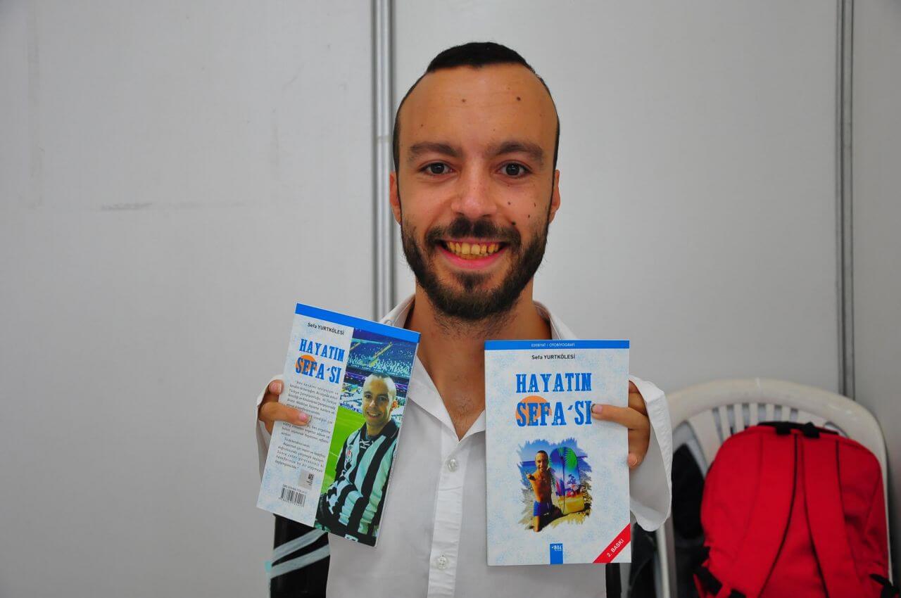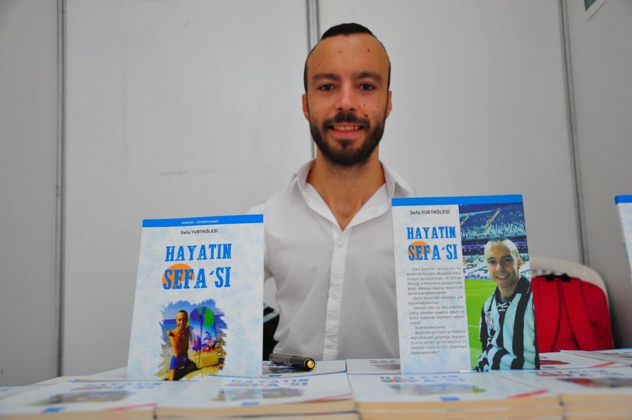 Manisa’nın Şehzadeler ilçesinde Trombositopeni-radius yokluğu (TAR) sendromu ile dünyaya gelen bedensel engelli Sefa Yurtkölesi (26), sol ayağıyla 6 ayda yazdığı ve hayat hikayesini ele aldığı ‘Hayatın Sefa’sı” isimli kitabını, yine ayağıyla okuyucularına imzaladı.