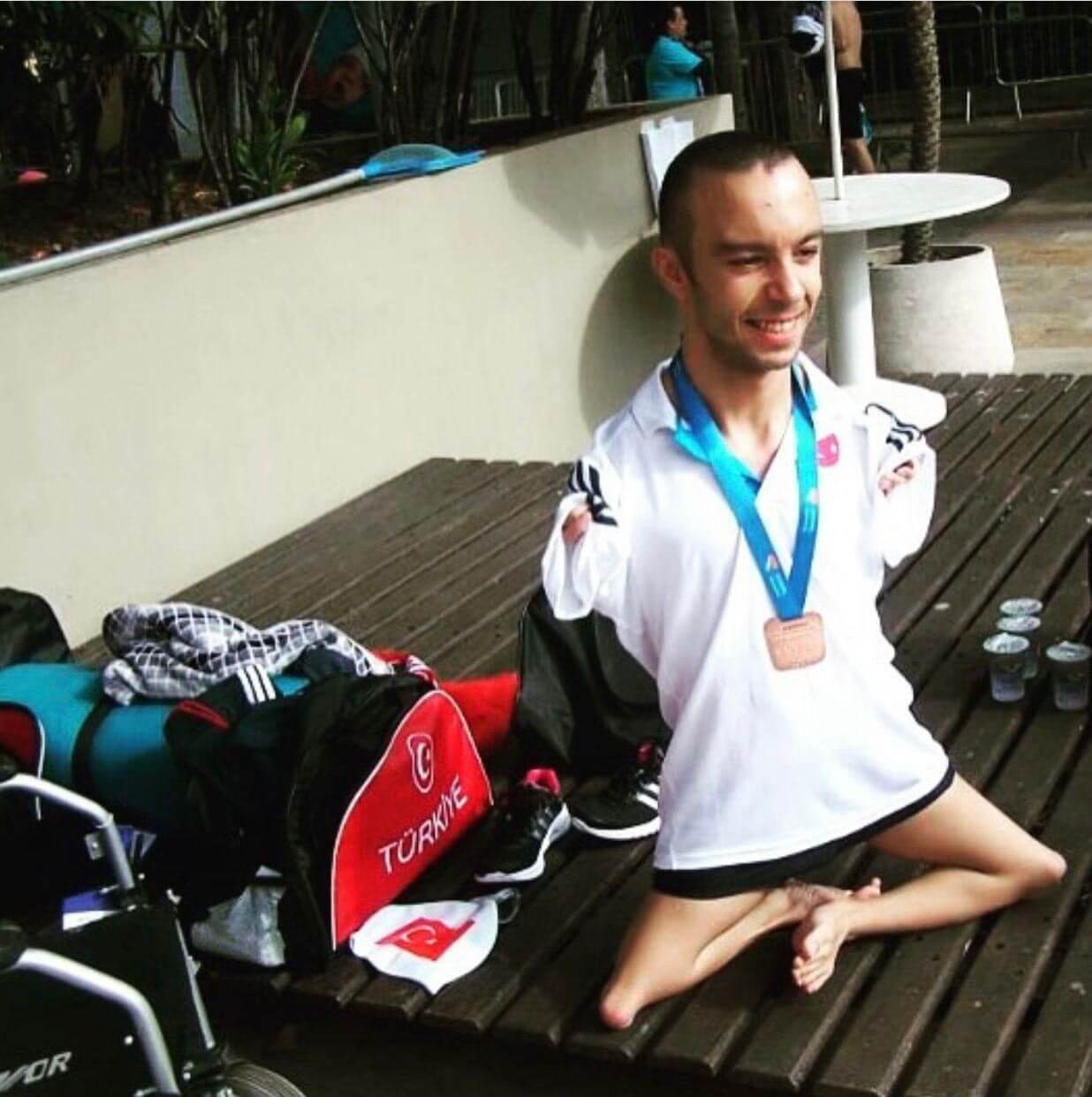 Sağlıklı bir bireyin ellerini kullandığı gibi kendisinin de ayaklarını kullanabildiğini belirten Yurtkölesi, “TAR sendromu vakası ile dünyaya geldim. Doktorlar dahi neremi kullanıp, neyi başarıp ya da başaramayacağımı bilmiyorlardı. Sol ayağımla yemek yemeye ve yazı yazmaya başladım. Lisede beden eğitimi öğretmenimin yaptığı dokunuş sayesinde yüzme sporuna başlamamla birlikte hayatım değişti. Başta başaramayacağımı ve yüzde 98 engelli olduğumu söyledim. Daha sonra hocam bana dünya çapında bedensel engelli yüzücülerinin videolarını izlettirdi. İlham alarak yüzme sporuna başladım. 2,5 aylık çalışmanın ardından Türkiye şampiyonasında 4 madalya aldım. Milli takıma yükseldim. Brezilya’da 50 metre kelebek branşında altın madalya kazandım” diye konuştu.