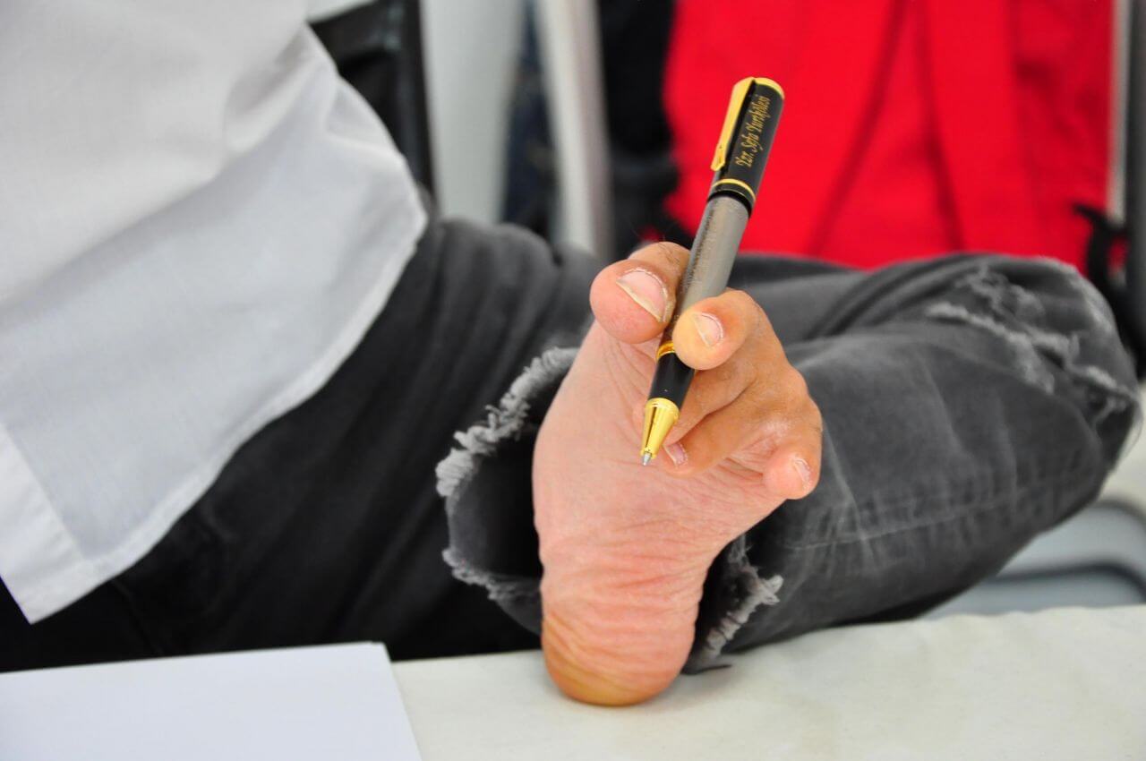 “Kitabımı sadece yazmış olmak için yazmadım. Gerçekten insanlara bir şeyleri hissettirmek için yazdım ve bunu da başardığımı düşünüyorum. Okuyucular ‘hem kahkaha attığımız hem de ağladığımız bölümler oldu’ diyorlar. Bu duyguları insanlara yaşattırabildiysem, başardığımı düşünüyorum. Tabi insanlar ister istemez bir insan nasıl ayağıyla kalem tutup da yazı yazabilir diye şaşırıyor. Ayağımı çok geliştirdim. Hiç zorlanmadan 6 ay boyunca her gün yazdım. Ayağımla yazdığım kitabımı, ayağımla imzalayarak okuyucularıma veriyorum.”