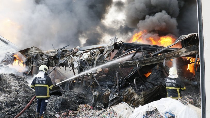 İHA’da yer alan habere göre yangın, Seyhan ilçesine bağlı Sarıhamzalı Mahallesi’nde bulunan bir alüminyum fabrikasında çıktı.