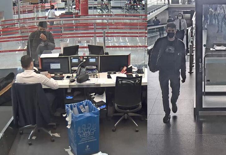 Öte yandan, Nurettin Ş.’nin havalimanına gelişi, bilet ve bagaj işlemlerini yaptırması ve pasaportta yakalandığı anlar güvenlik kamerasına yansıdı. (DHA)
