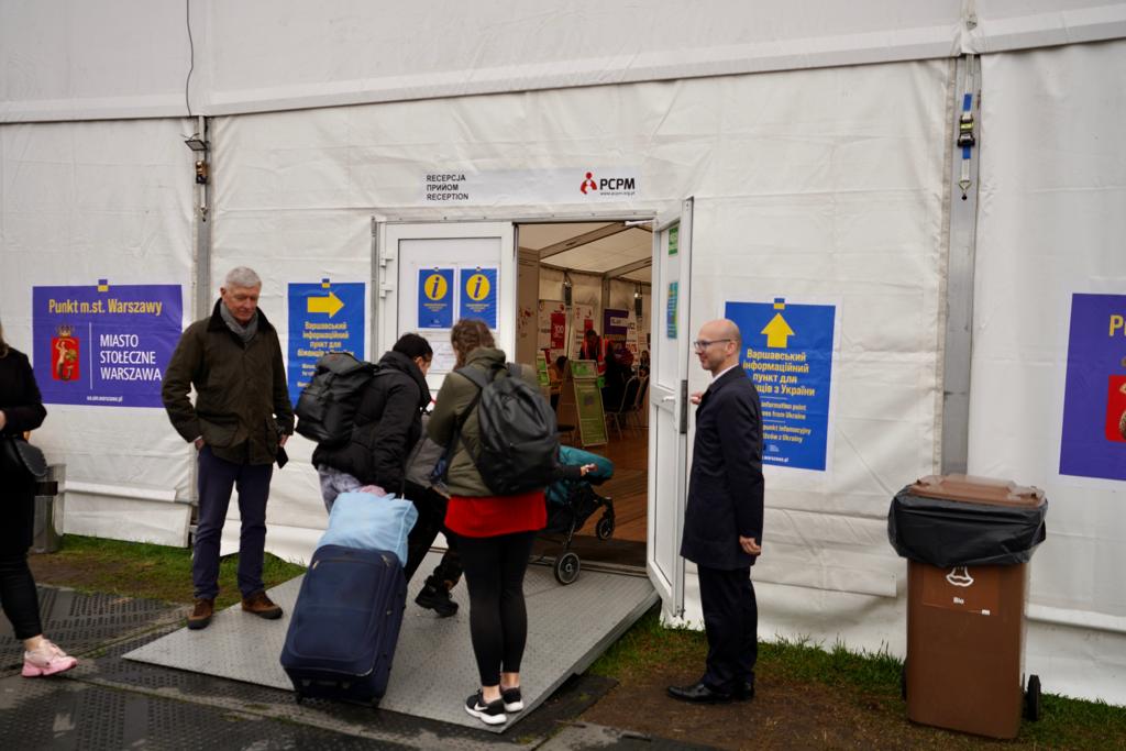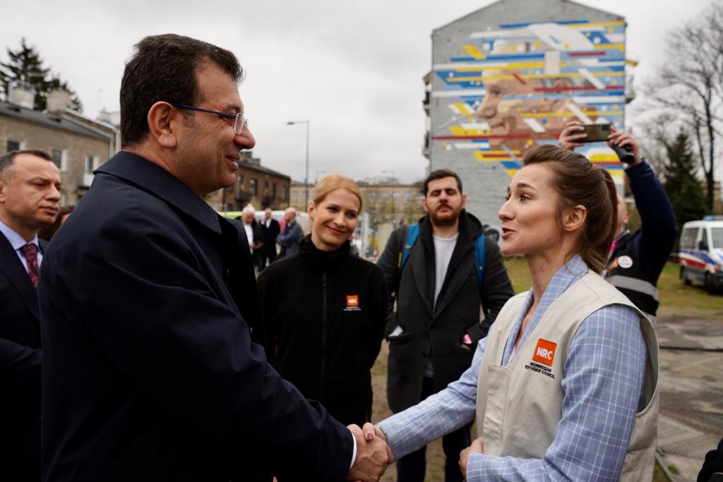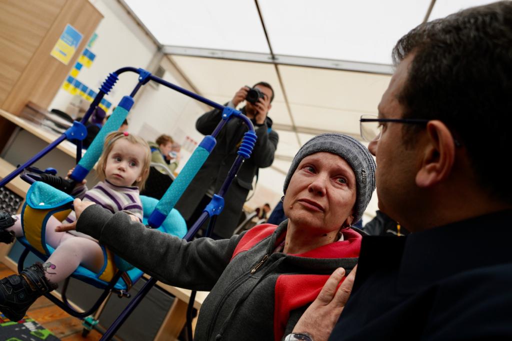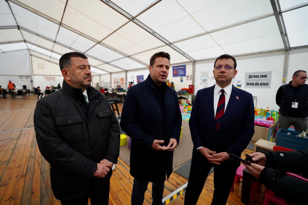 Ağbaba, İmamoğlu ve Trzaskowski, görüşmenin ardından şehir merkezindeki Berka Joselewicza 4 Street’te mülteciler için kurulan “Geçici Kabul Merkezi”nde Ukrayna’dan göç etmek zorunda kalan savaş mağdurlarıyla ve onlara yardımcı olan gönüllülerle buluştu. Gönüllülerden çalışmalarla ilgili bilgi alan heyet, sığınmacılarla da sohbetler gerçekleştirdi. Torunu Valerie ile merkezde bulunan Anna isimli Ukraynalı yaş almış kadınının İmamoğlu ile diyalogu, duygusal anların yaşanmasına neden oldu. İmamoğlu, yaşadığı travma nedeniyle göz yaşlarına engel olamayan Ukraynalı kadını sarılarak teselli etti. Sığınmacıların çoğunluğunun kadın ve çocuklardan oluştuğu gözlendi. Heyet, ziyaretle ilgili değerlendirmelerini de merkezde gerçekleştirdi.