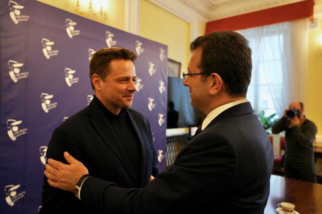 Trzaskowski de konuşmasında, “Bu bizim için çok önemli bir gün. Dostumuz İBB Başkanı’na şükranlarımızı sunuyoruz. İklim değişikliği, büyük şehirlerdeki eşitsizlik gibi farklı konularda zaten iş birliği içindeydik. Ama şimdi Avrupa’nın tanıklık ettiği en büyük mülteci krizinde, benzer deneyimlere sahibiz. Bu iş birliğine kesinlikle devam edeceğiz” ifadelerini kullandı.