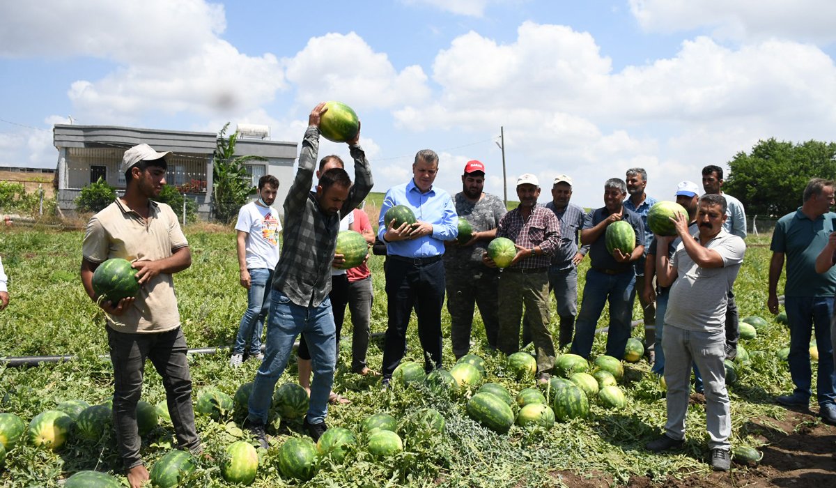 CHP Adana Milletvekili, TBMM Tarım, Orman ve Köyişleri Komisyonu Üyesi Ayhan Barut, Adana’nın Karataş İlçesi’ne bağlı Bahçe Köyü’nde hasat yapılan karpuz tarlasında üreticilerle buluştu. Karpuz üreticilerinin sorunlarını dinleyen, hasat yapılan alanda incelemelerde bulunup durumu yerinde gözleyen Ayhan Barut’a teşekkür eden çiftçiler, artan maliyetlere karşın düşen karpuz fiyatlarına tepki gösterdi. Türkiye’nin en erken karpuz hasadının Adana’da yapıldığına dikkat çeken karpuz üreticileri, hasat ettikleri karpuzu ‘Yazıklar olsun’ diyerek yere atıp kırdı, iktidara tepki gösterdi.