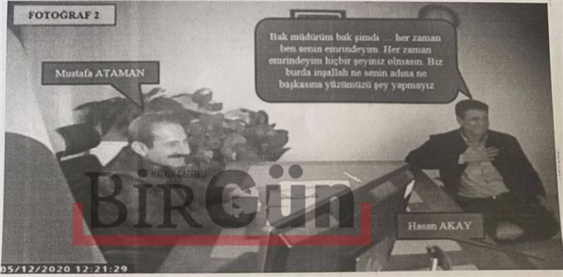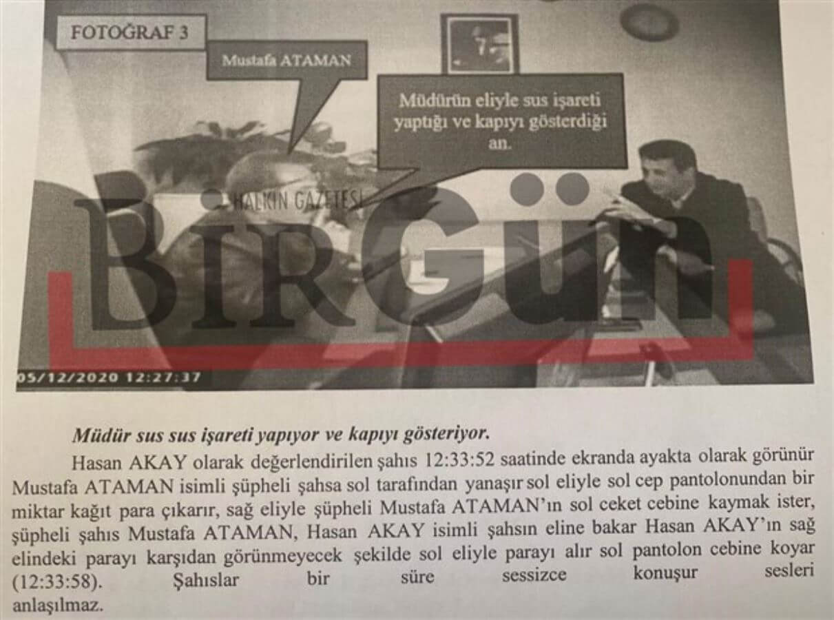 İddianamede yer alan ve Akçakale Gümrük Müdürlüğü’nde Müdür Yardımcısı Mustafa Ataman’ın makam odasına yerleştirilen gizli kamera ile 5 Aralık 2020 tarihinde sanıklar Ataman, Hasan Akay ve Ahmet Ayan arasında şu skandal konuşmalar kaydedildi: