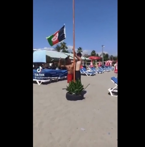 Bu kişilerden ikisi Antalya’nın Alanya ilçesinde tepki çeken bir harekette bulundu. Sosyal medyada viral olan videoda iki Afgan uyruklu kişi Afganistan bayrağını göndere çekerken görülüyor.
